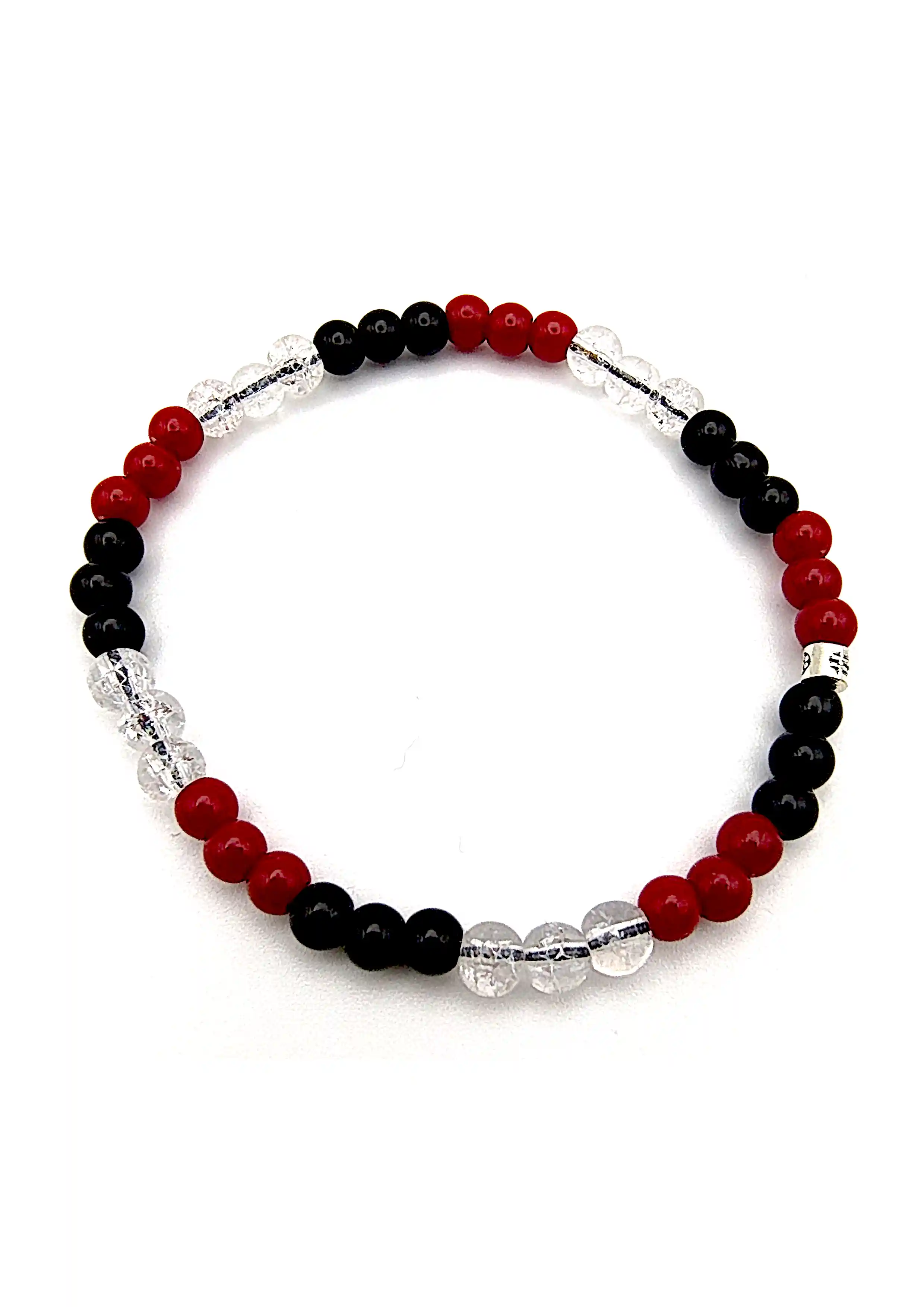 Brățara SM 232 este realizată manual dintr-o combinație atent echilibrată de coral roșu, cuarț spart transparent și onix negru, oferind un contrast cromatic puternic și elegant. Mărgelele de coral adaugă intensitate și vitalitate vizuală, cuarțul spart oferă luminozitate și textură, iar onixul negru creează stabilitate și echilibru estetic.