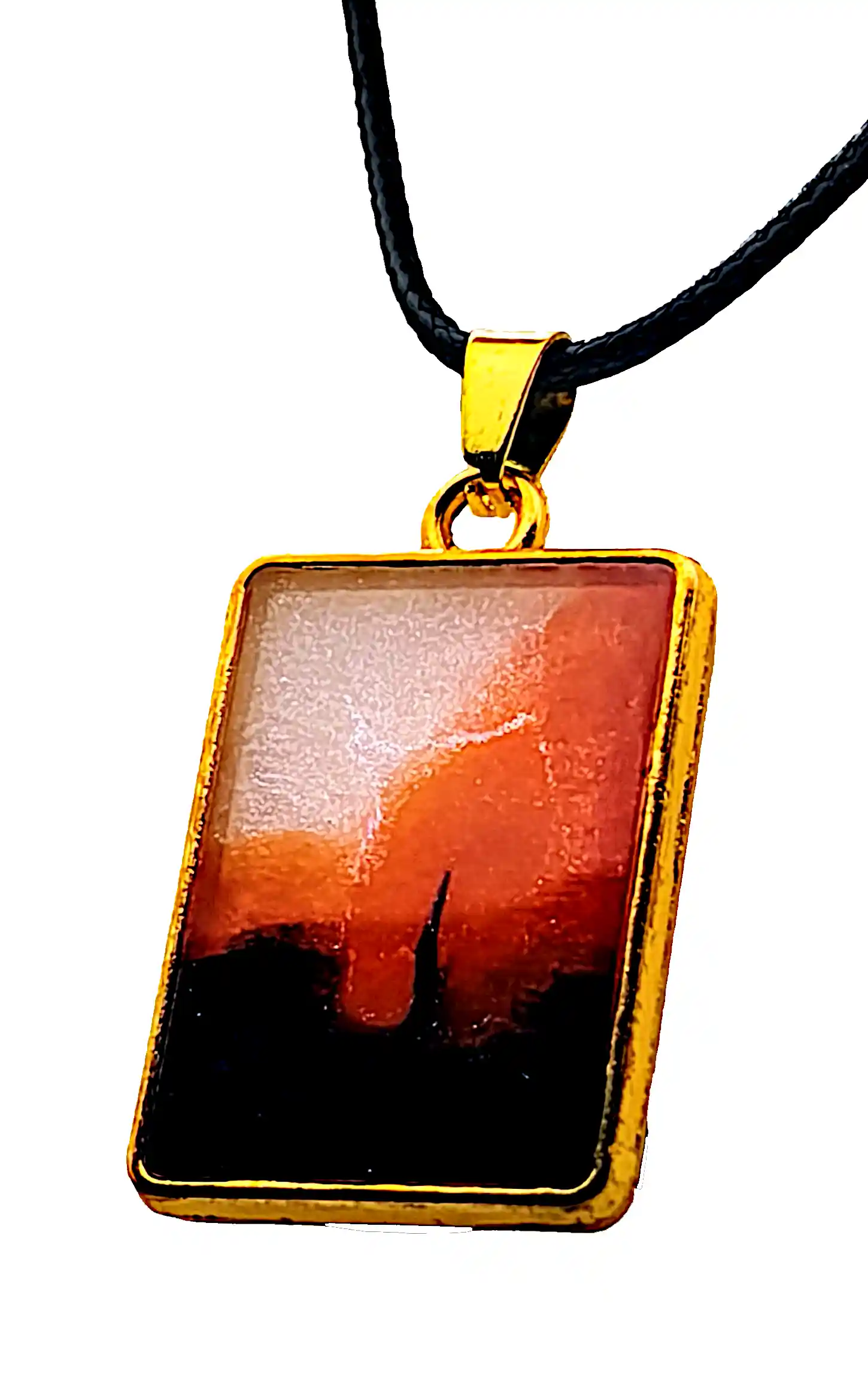 Modelul din rășină, turnat manual, prezintă variații naturale de culoare și textură specifice lucrărilor handmade. Fiecare piesă este unică și nu poate fi reprodusă identic, ceea ce conferă pandantivului autenticitate.