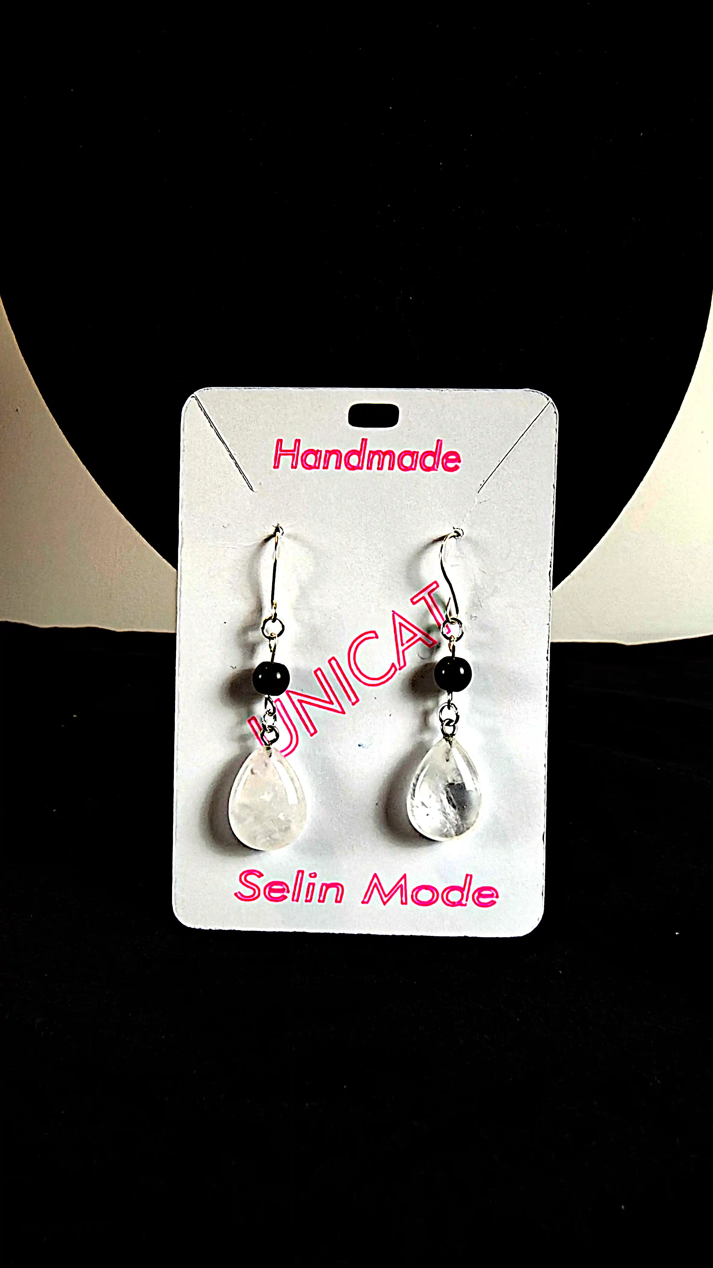 Selin Mode Cercei cu Piatră Naturală de Cuarț Alb și Accente Negre – Handmade SM71