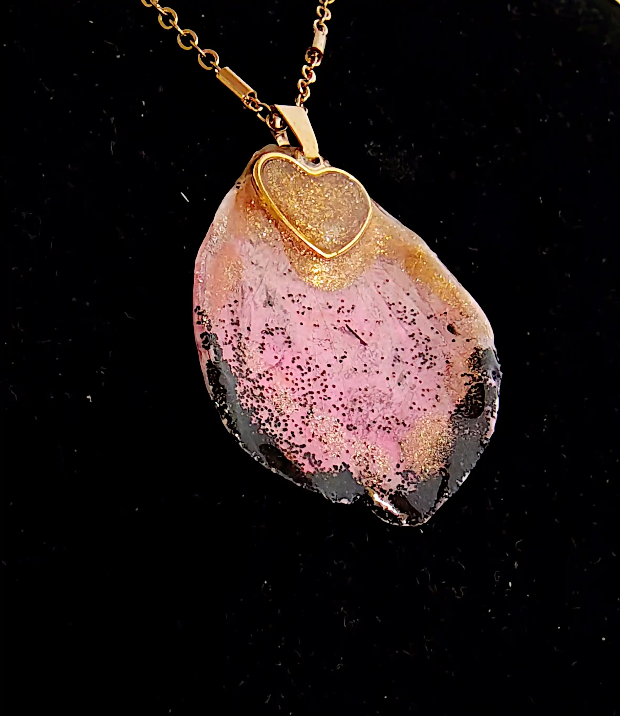 Selin Mode Set Handmade Cercei și Pandantiv din Petale Naturale de Trandafir cu Inimioare Aurii – SM 99